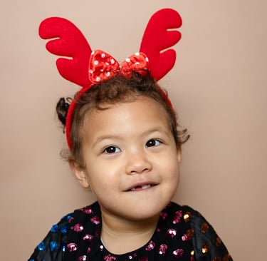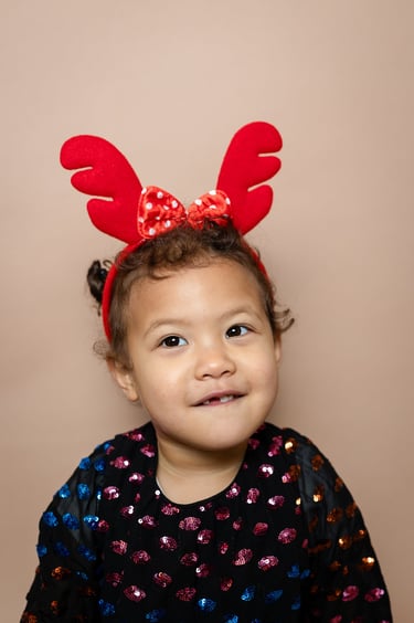 Keep decorations in the background simple. A wreath, string lights, or festive cushions add Christmas charm without cluttering the frame. Props like candy canes or ornaments give kids something to hold, which helps restless hands stay occupied during photos.